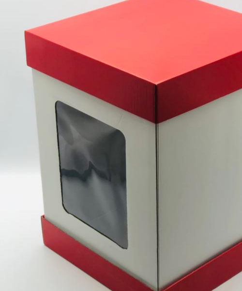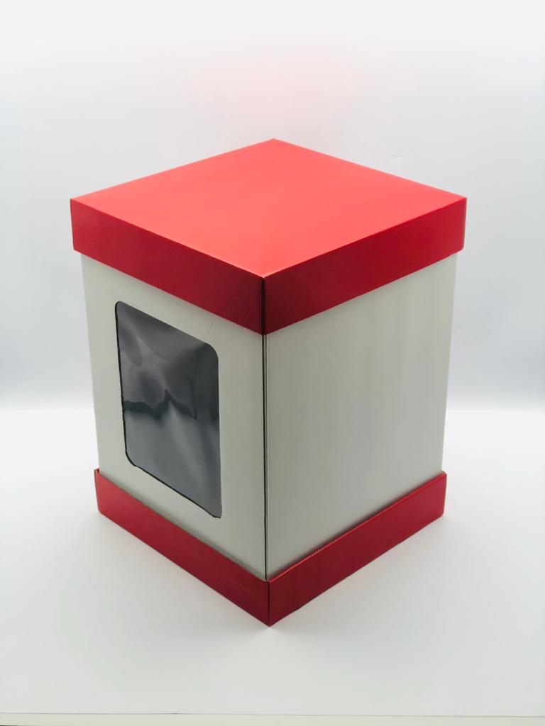 35x35x50 Pencereli Beyaz - Kırmızı Kapaklı Kutu