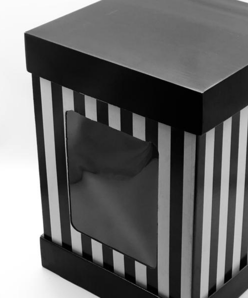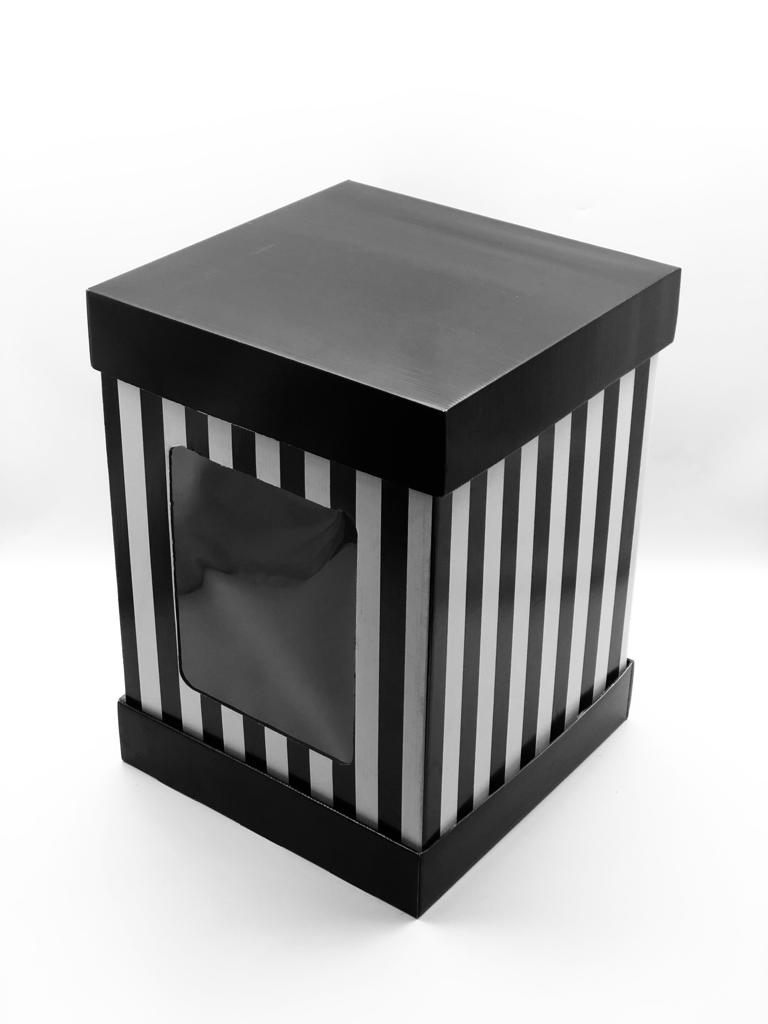 35x35x50 Pencereli Siyah Çizgili - Siyah Kapaklı Kutu
